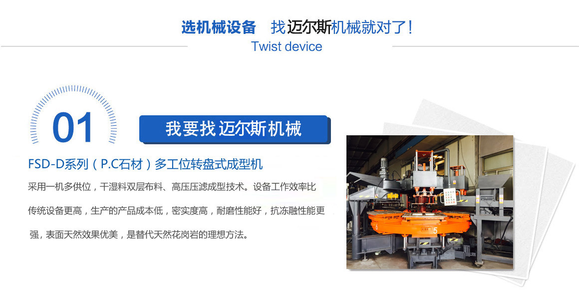 公司最初以生產(chǎn)320型、400型、500型、650型單工位模壓磚、瓦機(jī)為主,于2014年開發(fā)出了三工位轉(zhuǎn)盤機(jī),而六工位轉(zhuǎn)盤機(jī)的研發(fā)成功,則是2017年,同年在大連客戶那里正式投入生產(chǎn)... |